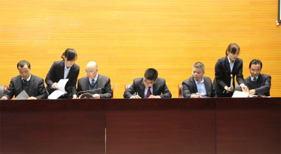 会上公司与各经营单位、管理部门成功签订2015年目标责任书。