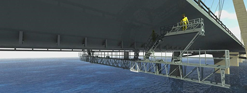 港珠澳大桥梁底检查车具有变轨过墩(塔),过伸缩缝,同步直线行走,大爬坡,环保节能,耐久性优越等功能。